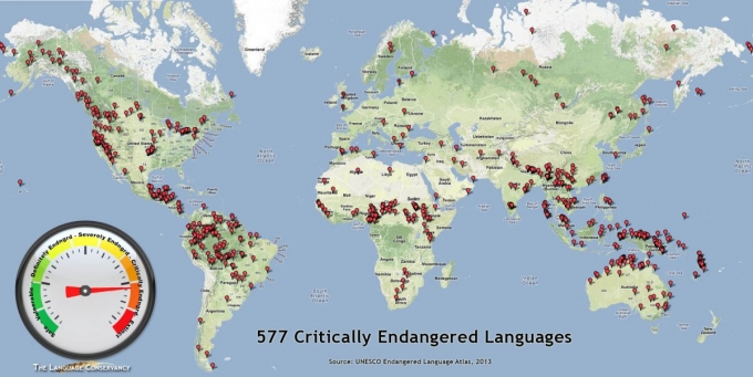 비영리단체 '언어보호단체'(The Language Conservancy)가 최근 공개한 '그린 언어지도'에 따르면 해수면 상승으로 적도 아프리카 주변과 태평양 및 인도양 지역에서 사용되는 577개의 소수언어들이 멸종위기에 직면해 있다.