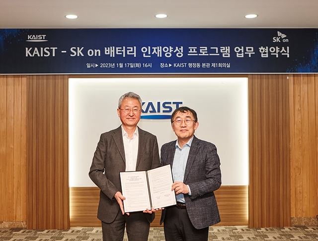 SK온과 카이스트는 국가 첨단 전략산업인 배터리 산업 발전을 위해 고급인력 양성이 시급하다는 공감대를 바탕으로 산학협력 교육 프로그램 'SKBEP'(SKon-KAIST Battery Educational Program)를 개설하기로 업무협약을 맺었다고 18일 밝혔다.