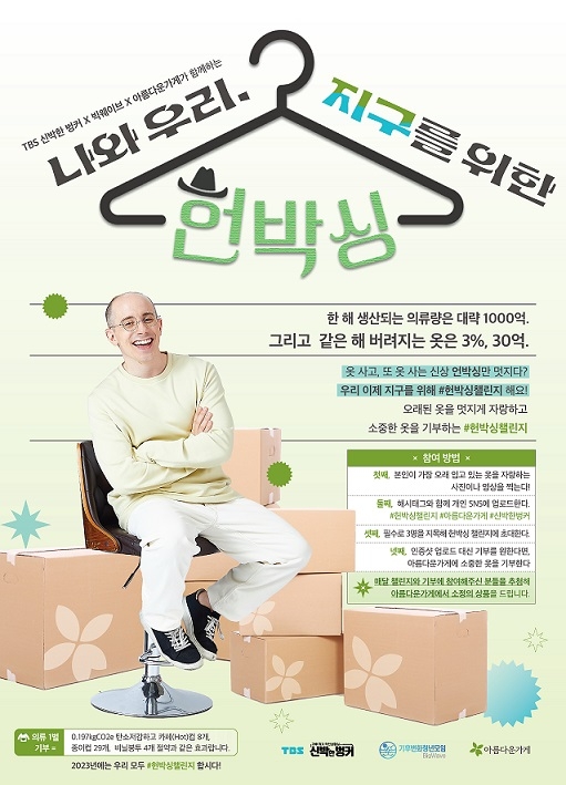 비영리 공익법인 아름다운가게가 TBS 신박한 벙커, 기후변화청년모임 빅웨이브와 함께 '헌박싱 챌린지'를 진행한다고 18일 밝혔다.