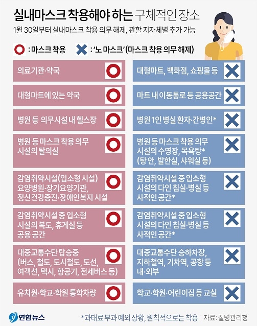 다만 실내마스크 착용의무가 유지되는 곳도 있다.