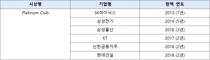 '탄소경영 아너스클럽'에 5년 연속 편입되면 명예의 전당 '플래티넘 클럽'에 입성할 수 있다. 이번에는 SK하이닉스과 삼성전기, 삼성물산, KT, 신한금융그룹, 현대건설이 '플래티넘 클럽'에 선정됐다. CDP에 제출한 정보에 대해 제3자 검증을 받지 않으면 탄소경영 아너스 클럽과 명예의 전당에 편입될 수 없다.
