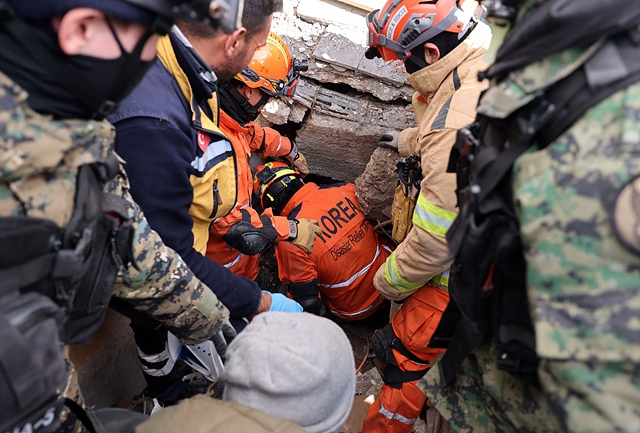 10일(현지시간) 현지에 도착해 이틀째 수색작업을 진행하고 있는 한국 긴급구호대는 지금까지 총 5명을 지진 잔해더미에서 구해냈다. 우리나라 수색대는 39명의 인력과 군견 등 2개팀으로 구성해 생존자 발견 가능성이 높은 하타이의 주도 안타키아 일대에서 수색작업을 진행중이다.