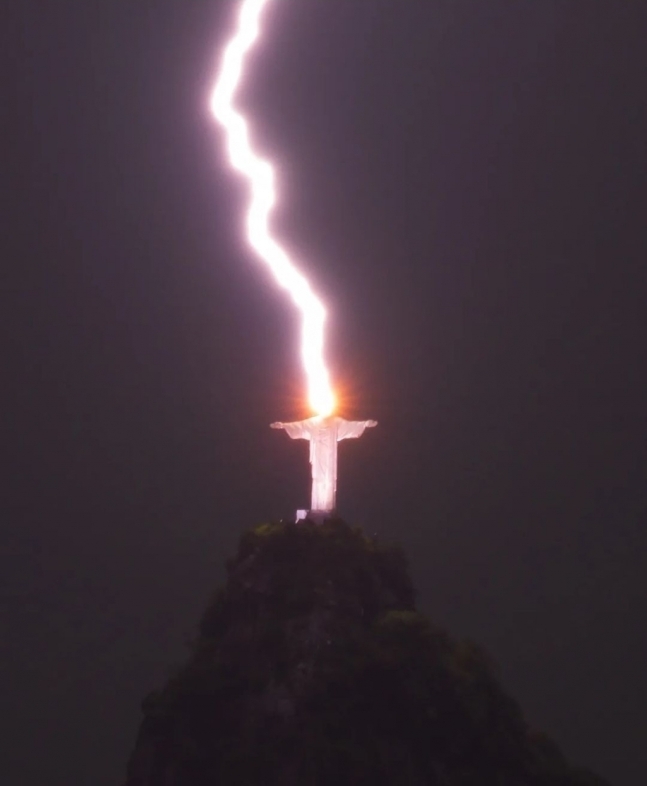 세계 7대 불가사의 중 하나인 브라질 리우데자네이루의 거대 예수상이 벼락을 맞는 모습이 포착돼 화제다.