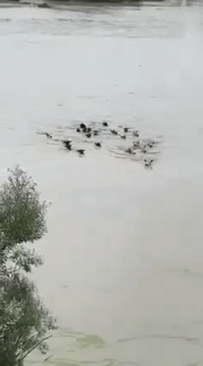 국가 비상사태가 선포될 만큼 사이클론 가브리엘이 뉴질랜드에 피해를 입힌 가운데 홍수에 떠내려간 소들이 주인의 부름에 일사불란하게 헤엄쳐 밖으로 빠져나오는 모습이 포착됐다.