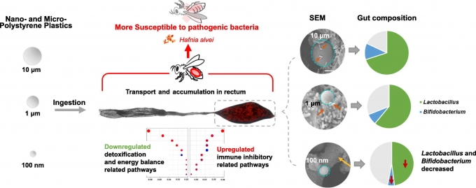 중국농업대학 연구팀은 꿀벌이 폴리스티렌(PS) 재질의 나노플라스틱을 섭취할 경우 장내 미생물 군집에 피해를 끼치면서 소화·흡수 능력이 떨어지는 탓에 정상적으로 성장하지 못하게 되고, 급기야 특정 질병에 따른 치사율까지 높아진다는 사실을 밝혀냈다.