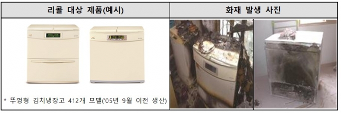 최근 3년간 발생한 김치냉장고 화재 총 909건을 분석한 결과, 79.9%(726건)가 위니아 김치냉장고였고, 이 가운데 제조연월이 확인되는 567건의 94%(533건)가 2005년 9월 이전 생산된 제품으로 나타났다. 게다가 화재가 발생한 위니아 노후 김치냉장고 소비자의 대부분이 60대 이상이었다.