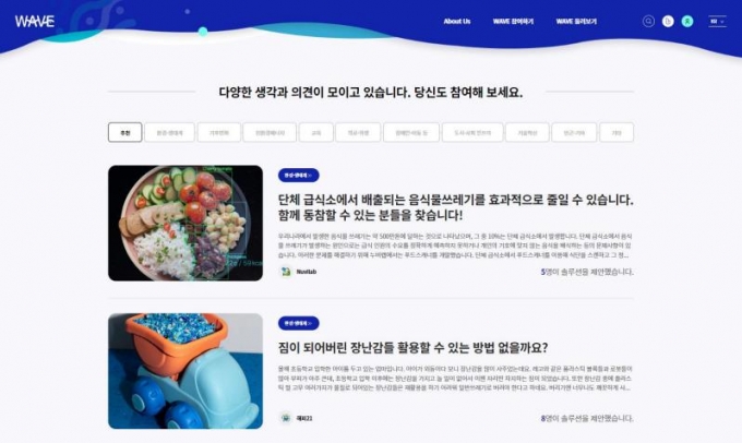 웨이브는 집단지성을 통해 아이디어를 제안하고 발전시켜 실행하는 자발적 솔루션 플랫폼이다.