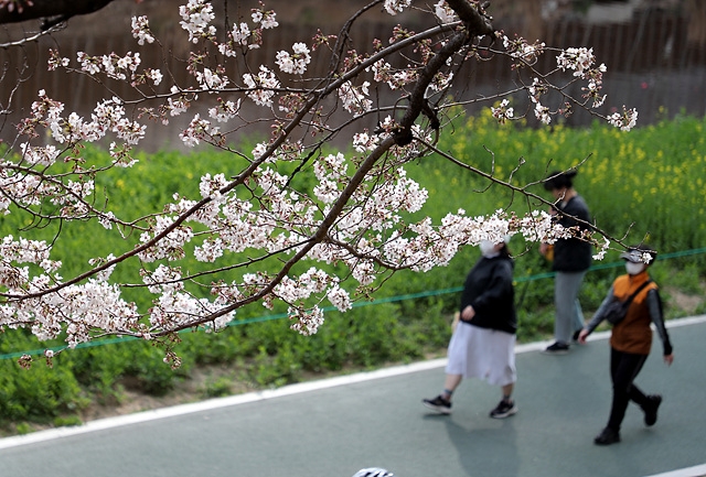 낮 최고기온이 16도를 넘는 포근한 날씨가 이어지면서 남부지방의 벚꽃들이 예년보다 일찍 개화하고 있다.