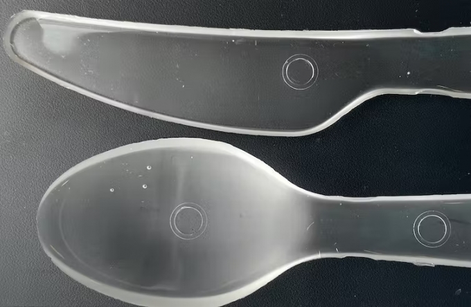 이렇게 만들어진 PECA를 흔히 '타파웨어'로 알려진 식품 저장용 용기와 같은 재질의 폴리에틸렌 주형틀에 넣으면 주형틀에 들러붙지 않고 그대로 굳게 된다. 굳어진 PECA 덩어리를 미열에 20~30분 가열한 뒤 식히면 더 안정되고 단단한 형질로 바뀌게 된다. 연구팀은 PECA로 플라스틱 그릇이나 식기류를 손쉽게 만들 수 있고, 접착제, 아세톤, DMSO 등 원료들의 값이 매우 저렴하기 때문에 일회용 플라스틱 제품 대체제로 활용할 수 있을 것으로 기대했다.