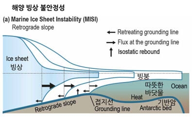 연구팀은 빙상 하부가 해저와 맞닿는 지점인 '접지선'(grounding line)의 변화에 초점을 맞췄다. 접지선은 해저에 잠긴 빙상 아래에 바닷물이 유입돼 빙상 하부가 녹을 때 해저 바닥을 따라 빙하 안쪽으로 후퇴한다. 이를 '해양 빙상 불안정'(Marine Ice Sheet Instability, MISI)이라고도 한다.