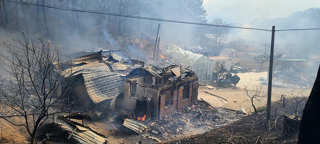 강원영동에 이날 오후 비가 내리면서 산불 진화에 도움을 줬다.