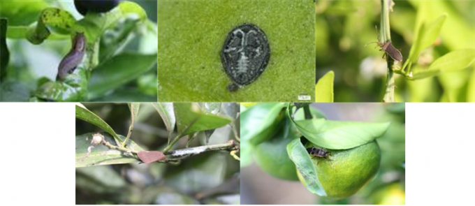 전체 60종 중 새로운 해충으로 두줄민달팽이, 식나무가루이, 산둥날개매미충(임시명칭), 귤큰별노린재, 시골가시허리노린재 5종이 확인됐다.