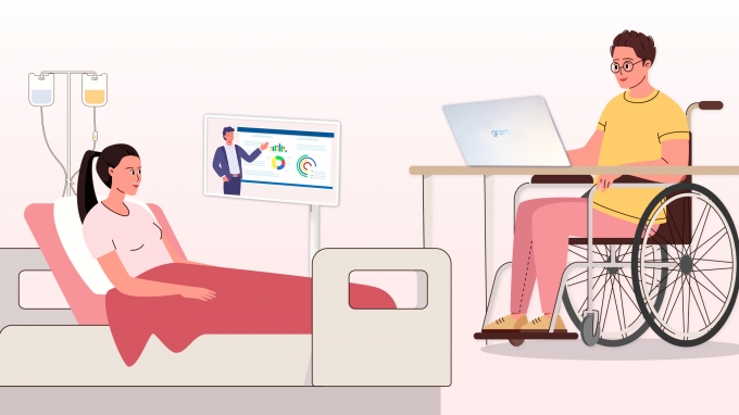꿀맛무지개교실 학생 대부분은 거동이 불편하거나 장기간 병원 치료로 침대에 누워 교육을 받고 있다. LG스탠바이미는 △이동이 자유로운 무빙스탠드, △손쉽게 조절하는 화면 높이∙방향∙각도, △손으로 터치해 간편하게 조작하는 화면 등 차별화된 폼팩터로 거동이 불편한 학생이 편리하게 온라인 수업을 받을 수 있게 한다고 기업 측은 설명했다.