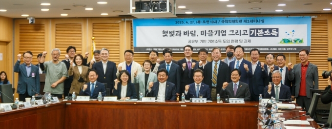 27일 국회 기본소득연구포럼 주최로 국회의원회관 제2세미나실에서 개최된 '햇빛과 바람, 마을기업 그리고 기본소득' 토론회에서는 신안군의 햇빛연금, 장고도의 해삼·전복배당, 제주 가시리 공동목장 등 공유부를 기반으로 지방소멸을 막기 위해 주민들과 지자체가 자발적으로 나선 구체적인 사례들과, 이를 반영한 정책방향이 제시됐다.