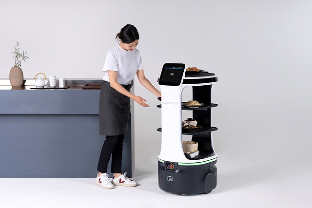 KT 차세대 AI 서비스로봇 2종 모두 태블릿과 키오스크에서 주문을 돕는 '스마트오더' 서비스와 매장내 호출 시스템 등과 서비스 연동을 제공한다. 테이블에 있는 태블릿이나 호출벨 등으로 요청사항을 접수하면 AI 서비스로봇이 즉시 손님을 응대하는 것이다.