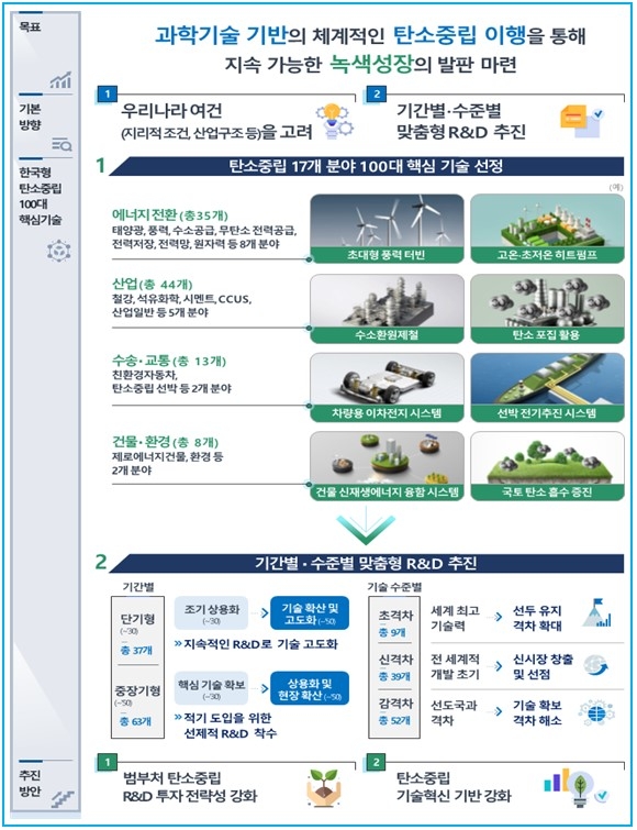 탄소중립과 녹색성장 '두마리 토끼'를 잡을 수 있는 한국형 탄소중립 100대 핵심기술이 확정됐다.