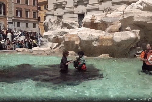 트레비 분수는 영화 '로마의 휴일'과 '달콤한 인생'에 등장한 장소로도 유명한 로마 명소로 매년 수백만 명의 관광객이 찾는 곳이다. 분수 주변에 있던 관광객들은 이들의 행동을 촬영했고 곧 신고를 받고 출동한 경찰에 의해 활동가들은 끌려나온 뒤 시위 물품을 압수당했다. 구경꾼 일부는 욕설과 야유를 보내기도 했다.
