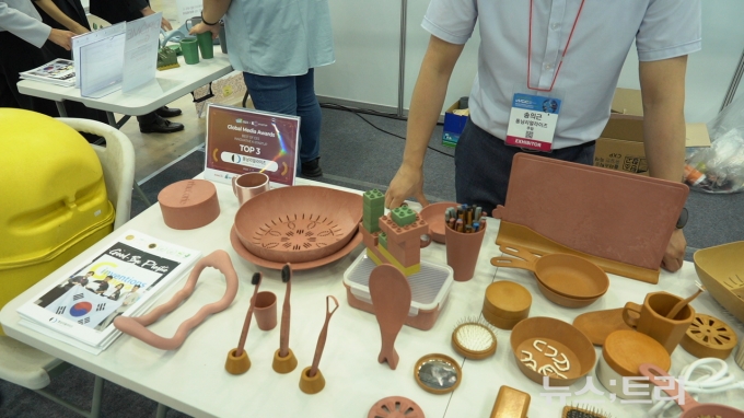 나무를 '녹여' 플라스틱처럼 찍어 만든 제로웨이스트 생활용품도 눈길을 끌었다.