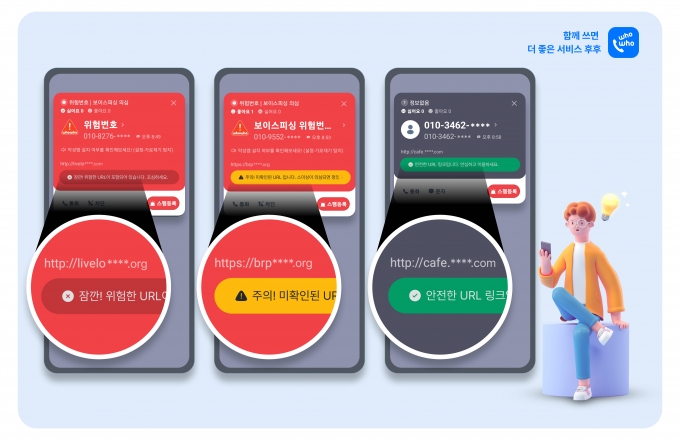 이 기능은 URL이 포함된 문자메시지가 도착하면 해당 URL을 분석해 '위험, 의심, 안전' 3가지 유형으로 알림창에 실시간 제공한다. '위험한 URL이 포함되어 있습니다'와 같은 직관적인 메시지로 알려주기 때문에 이용자가 실수로 클릭하는 사고를 미연에 방지할 수 있다.