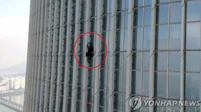 ▲맨손으로 롯데월드타워를 오르는 영국인 남성
