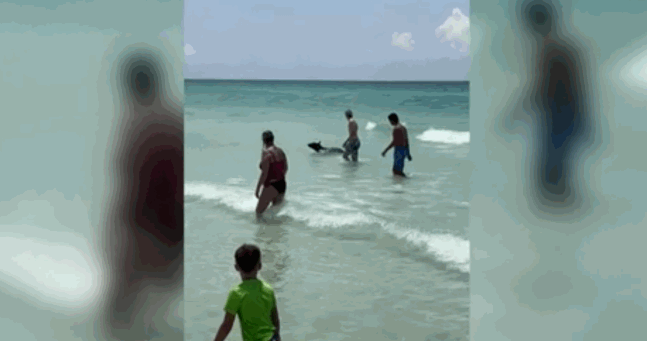미국 플로리다 해변에서 흑곰 한 마리가 수영하는 사람들 틈에서 물놀이를 즐기는 장면이 포착됐다.