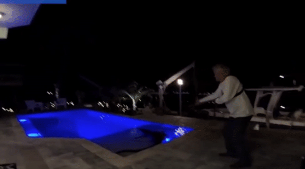 영상 속 집주인은 새벽 2시쯤 자신의 집 앞에 있던 풀장 안에서 수영을 즐기던 악어를 보고 깜짝 놀라 당국에 신고했다. 집으로 출동한 현지 야생동물구조대는 물속에 있는 악어를 밧줄로 끌어내기 위해 안간힘을 다했다.