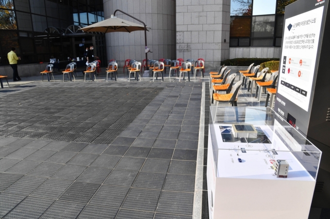 또 한국동서발전은 보도블록형 태양광 패널을 상용화해 현재 울산 중구청 앞 등 전국에서 실증 사업이 진행되고 있다. 이 설비는 폐기물 등 친환경 소재를 활용해 제작됐으며 하루 3시간30분 기준으로 22㎾, 연간 8030㎾의 전력을 생산해 청사 전력으로 사용된다.