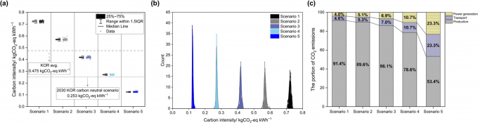 연구결과 암모니아 생산방식이 이산화탄소 배출량에 대한 지표인 탄소집약도에 가장 큰 영향을 미치는 것으로 나타났다. 연구팀은 한국이 수소를 생산할 때 사용하는 탄소중립 암모니아 비율을 78%까지 높일 경우 '2050 탄소중립' 달성하기 위한 중간 목표인 2030년 탄소집약도에 도달할 수 있다는 것을 확인했다. 이를 통해 탄소중립 암모니아를 활용한 전기 생산이 이산화탄소를 줄이는데 충분히 경쟁력 있다는 결과를 도출했다고 밝혔다.