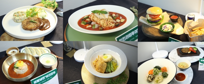 아워홈은 지난 28일 경기 성남시 분당차병원 직원식당에서 첫번째 저탄소 식단 전시회를 진행해 큰 호응을 얻었다. 이날 전시회에서 선보인 6종의 메뉴인 △쿠스쿠스플레이트 △치킨라따뚜이파스타 △쉬림프버거 △비빔냉면과 비건만두 △두부카츠채소덮밥과 계란튀김 △비빔밥과 비건떡갈비 등은 오는 7월부터 9월까지 3개월간 월 2회씩 분당차병원 직원식당 중식메뉴로 편성된다.
