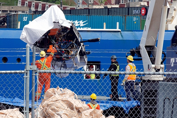앞서 미국과 캐나다 등 국제수색대는 지난 22일 타이타닉호 뱃머리로부터 488m 떨어진 해저에서 테일콘(기체 꼬리부분의 원뿔형 구조물) 등 잠수정 잔해물 5개를 발견해 이날 육지로 옮겼다.
