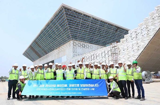인도국제전시컨벤션센터는 총면적 30만㎡ 규모의 인도 등 남아시아 최대규모 전시장으로, 중국 전시장 4개에 이어 아시아 5위 규모다. 총공사비 약 4조원의 인도 정부 핵심 마이스(MICE. 국제회의·전시회·박람회 등을 열어 대규모 관광객을 유치하는 산업) 프로젝트로, 전체 30만㎡ 중 1단계 12만㎡(전시장 6만㎡, 회의실 6만㎡)가 오는 10월 개장을 앞두고 있다.