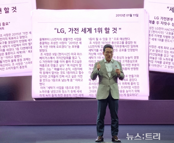 조 사장은 "앞으로 LG전자는 좋은 제품을 만드는 최고 가전 브랜드에 그치지 않고, 사업모델과 방식의 혁신을 통해 고객의 다양한 경험을 연결, 확장하는 '스마트 라이프 솔루션 기업'으로 변화·도약하는 담대한 도전을 이어갈 것"이라며 "이러한 목표를 향해 일하는 방법과 소통하는 방식까지 리인벤트함으로써 새로운 LG전자를 만들어 나가겠다"고 강조했다.