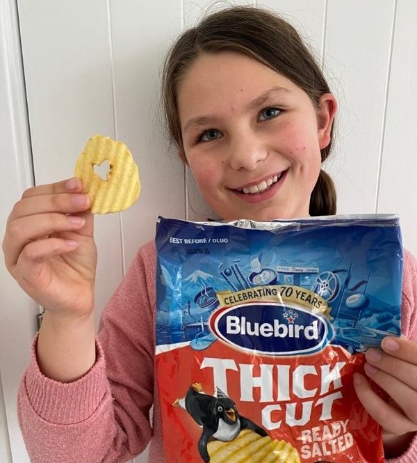 19일(현지시간) 뉴질랜드 매체 뉴스허브 등에 따르면 비앙카 진 맥퍼슨(10)은 최근 감자칩을 먹다가 가운데 하트 모양 구멍이 뚫린 조각을 하나 발견했다.
