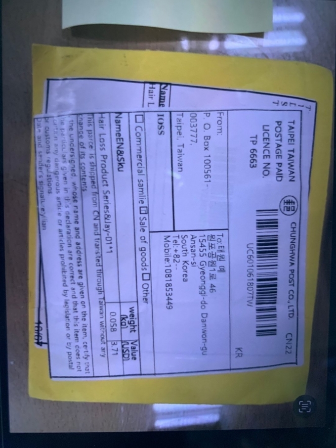이들 우편물은 모두 대만 타이베이(P.O.Box 100561-003777, Taipei Taiwan)에서 발신된 국제우편물로 노란색이나 검은색 봉투에 싸인 소포였다. 발신자는 확인되지 않았다.