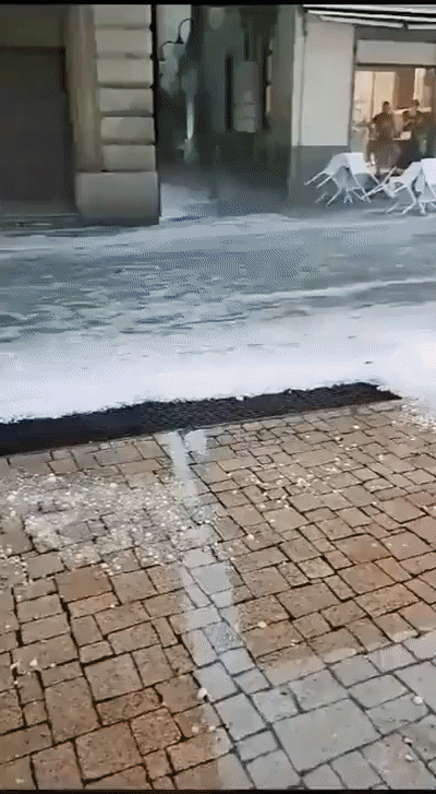 폭우와 우박이 쏟아진 세레뇨 거리에는 얼음 조각이 빙하처럼 빗물에 쓸려가면서 '얼음의 강'이 만들어졌고 이를 촬영한 영상이 소셜서비스(SNS)에서 화제가 되고 있다.