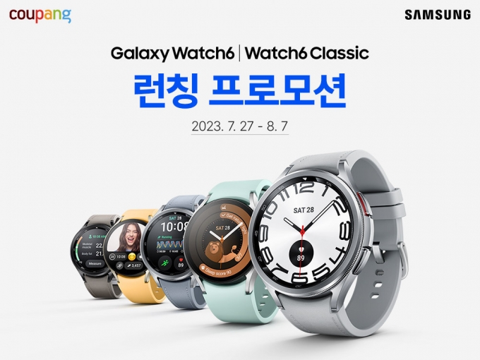 쿠팡과 위메프가 삼성전자 스마트워치 '갤럭시워치6'를 27일부터 8월 7일까지 사전판매하는 한편 태블릿PC '갤럭시탭S9 시리즈'도 27일부터 8월 3일까지 사전판매한다고 밝혔다.