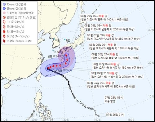 일본 오키나와를 강타하고 있는 제6호 태풍 '카눈'이 일본을 가로질러 동해로 진입할지의 여부가 초미의 관심사다.