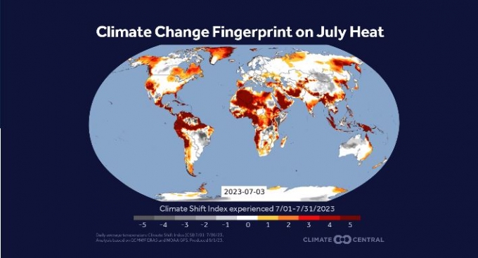 기후연구단체 클라이밋 센트럴(Climate Central)이 최근 발표한 보고서에 따르면, 올 7월 기후변화로 인해 전세계 60억명에 달하는 사람들이 극한폭염에 노출됐다.