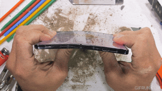 힌지가 굽어 똑바로 펴지지 않고 화면 끝 쪽에 붉은 줄이 생기는 등 이상이 있었지만 40만회는 하루에 100번을 접었다 폈다고 가정할 때 무려 11년이나 사용할 수 있는 횟수다.