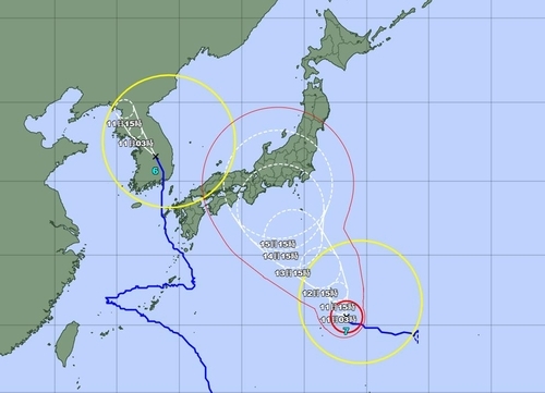 이후 13일 오전 3시에는 일본 도쿄 남쪽 약 690㎞ 부근 해상을, 14일 오전 3시 일본 도쿄 남남서쪽 약 490㎞ 부근 해상을 지나갈 것으로 보인다. 광복절인 15일 오후쯤에는 도쿄 남서쪽 부근에서 상륙해 북진할 것으로 전망된다.