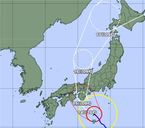 제7호 태풍 '란'이 15일 일본을 강타한 뒤 북동진하면서 빠져나갈 것으로 보여, 한반도에 영향을 미치지 않을 전망이다.