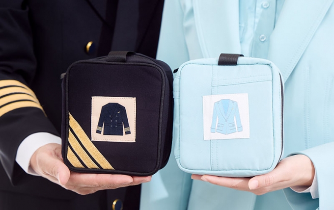 의약품 파우치 제작에는 승무원들이 충분히 입고 반납한 헌 유니폼이 활용됐다. 사용 후 반납된 유니폼은 통상 폐기하지만, 이를 업사이클링 제품으로 재탄생시켰다.