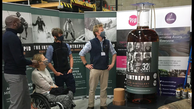 '인트레피드'(Intrepid·용감무쌍한)라는 이름이 붙여진 이 위스키는 맥캘란(스코틀랜드 산 싱글몰트 위스키) 32년산으로 약 310ℓ짜리 병을 가득 채운 제품이다. 통상 위스키 1병의 용량은 0.7ℓ 정도다. 약 444병의 위스키가 초대형 1병에 담긴 것이다. 병 높이만 180㎝에 병 라벨엔 라눌프 피네스, 제이미 램지 등 영국 유명탐험가 11명의 사진이 붙어있다.