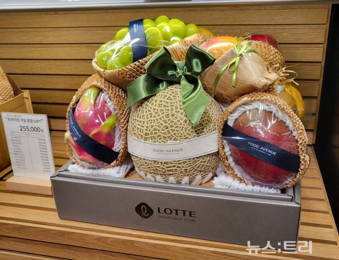 다만 현장에서 확인한 일부 선물세트에는 여전히 플라스틱을 사용하고 있었다. 과일세트의 경우 충전재로 종이를 활용하고 있었지만, 포도를 제외한 과일에는 여전히 스티로폼 충전재가 사용됐다. 판매원에게 질문하니 스티로폼 충전재를 제외한 포장재는 전부 종이라고 답변했다.