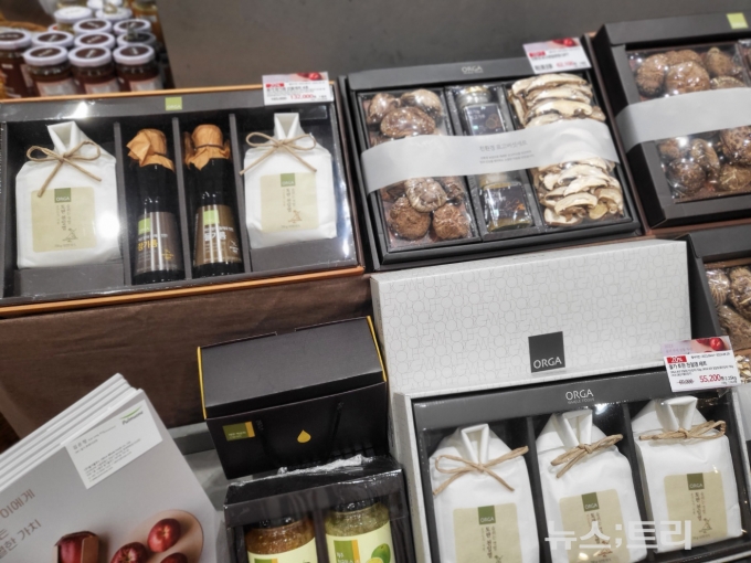백화점에 입점해 있는 풀무원 올가홀푸드 매장은 선물세트 포장에 플라스틱이 일절 보이지 않았다. 버섯, 홍삼 등의 선물세트에 최소한의 비닐을 제외하고는 모두 종이 포장재를 사용했다. 올가에 따르면 전제품 친환경 포장지 전환을 목표로 바이오매스 포장재, 옥수수 원료의 생분해 트레이, 재사용 종이 포장 등을 확대해가고 있다.