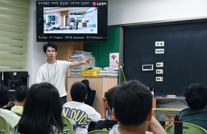 LG전자 임직원들이 초등학교에서 폐전자제품 자원순환을 가르치는 일일교사로 나섰다.