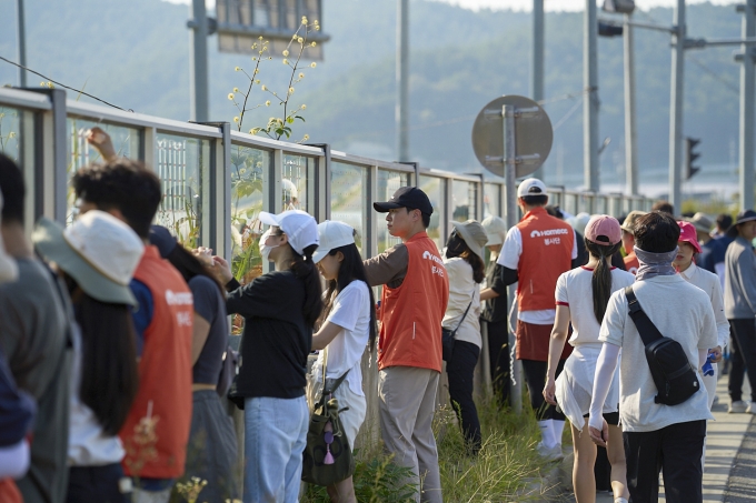 참여 인원들은 약 3시간동안 투명 방음벽 364m 구간에 조류충돌방지 스티커를 부착하는 작업을 진행했다. 이번에 스티커를 부착한 방음벽은 자연활동 공유플랫폼인 네이처링을 통해 지난 2018년 이후 180건 이상의 야생조류 충돌 피해사례가 관찰된 방음벽이다.