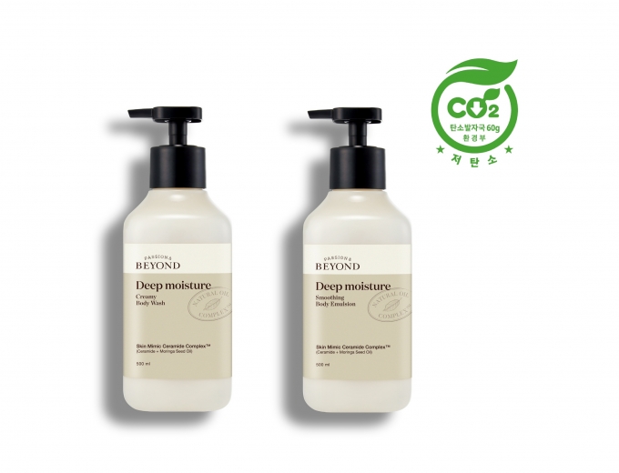 이번에 인증받은 저탄소 제품은 '비욘드 딥 모이스처 크리미 바디워시'와 '비욘드 딥 모이스처 스무딩 바디 에멀전' 2종이다. 두 제품의 용기는 재활용 플라스틱(PCR·Post-Consumer Recycled)이 98.5% 들어간 페트(PET)로 제작됐다. 또 생산단계부터 전력과 물 사용량을 줄이는 등 탄소배출량을 평균 9.4% 이상 감축했다. 특히 딥 모이스처 스무딩 바디 에멀전은 바디로션 품목 중 국내 최초로 저탄소 제품 인증을 받았다.