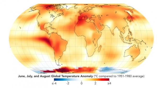 미국 항공우주국(NASA) 산하 고다드우주연구소(Goddard Institute of Space Studies, GISS)의 14일(현지시간) 발표에 따르면 올여름은 관측 평균치보다 0.23℃ 더 높았다. 특히 1951년부터 1980년 사이의 평균 여름온도보다 1.2℃ 높은 것으로 나타났다.
