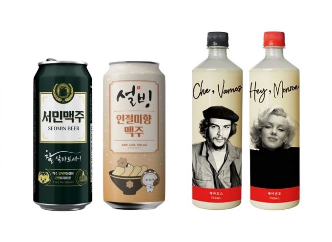 막걸리를 맥주로 바꾼 또다른 신상품 '설빙 인절미 맥주'(4500원)도 선보인다. MZ세대에서 주목받고 있는 인절미 막걸리를 맥주로 재해석한 것으로, 빙수 프랜차이즈 설빙의 대표 메뉴인 인절미 빙수의 맛과 향을 구현한 라거맥주다. CU는 4캔 1만2000원 행사로 제품을 보다 저렴하게 구매할 수 있다고 덧붙였다.